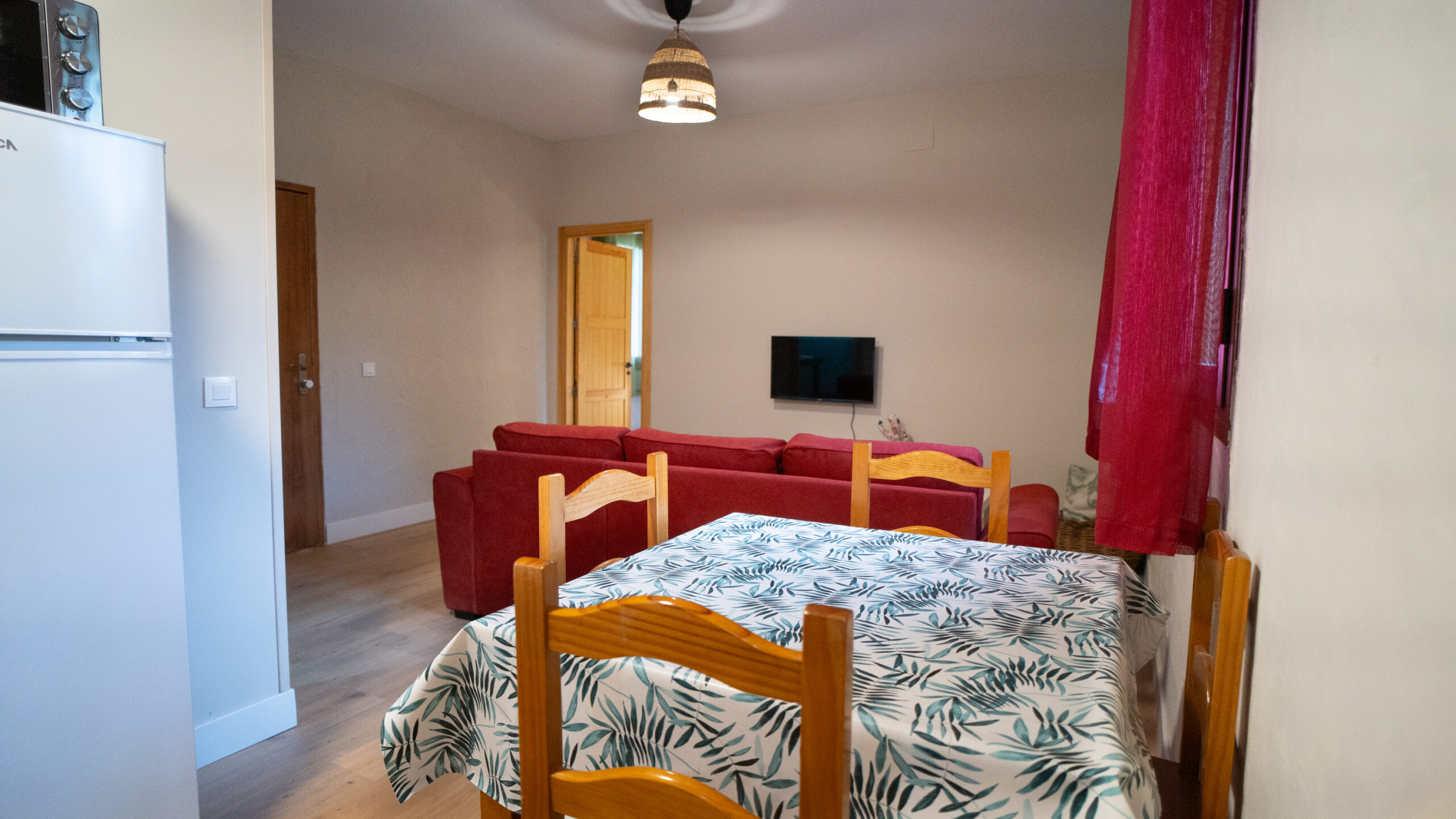 Ubicado en un edificio de planta baja, cuenta con entrada independiente y todo lo necesario para disfrutar de unos días de descanso en un entorno rural y tranquilo. Su distribución práctica y funcional lo hace ideal para familias, pequeños grupos y parejas que buscan un espacio acogedor, equipado y adaptado a sus necesidades.