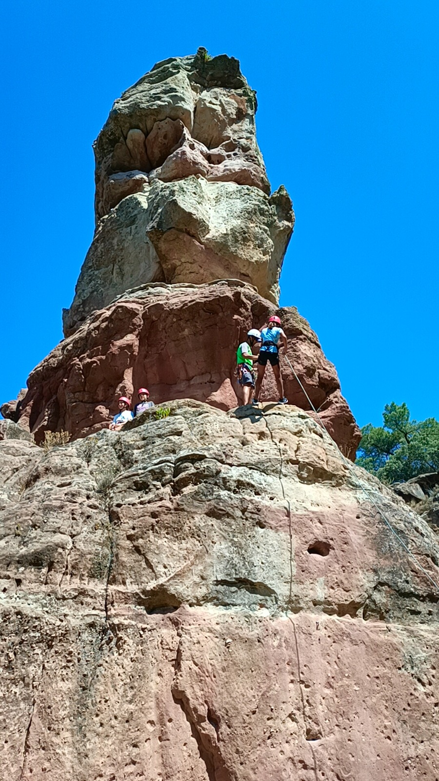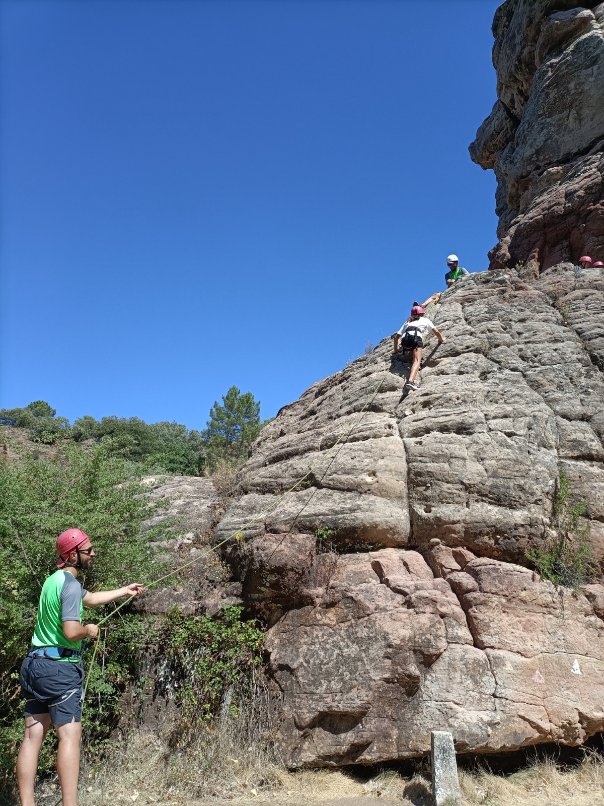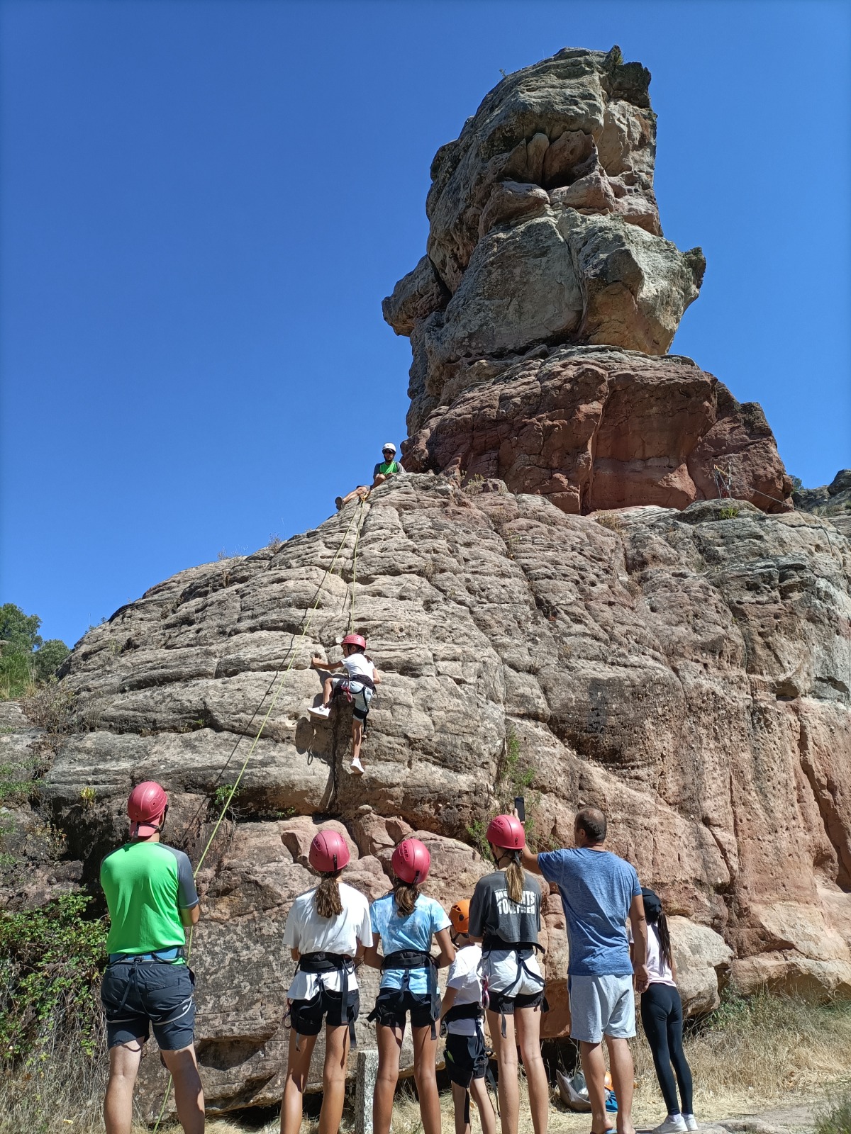 En concreto, hemos organizado la a actividad de escalada y rápel en la piedra del Huso en la que los participantes lo pasaron en grande y nosotros también un montón viendo como disfrutaban de la naturaleza, el compañerismo, la diversión y la aventura.