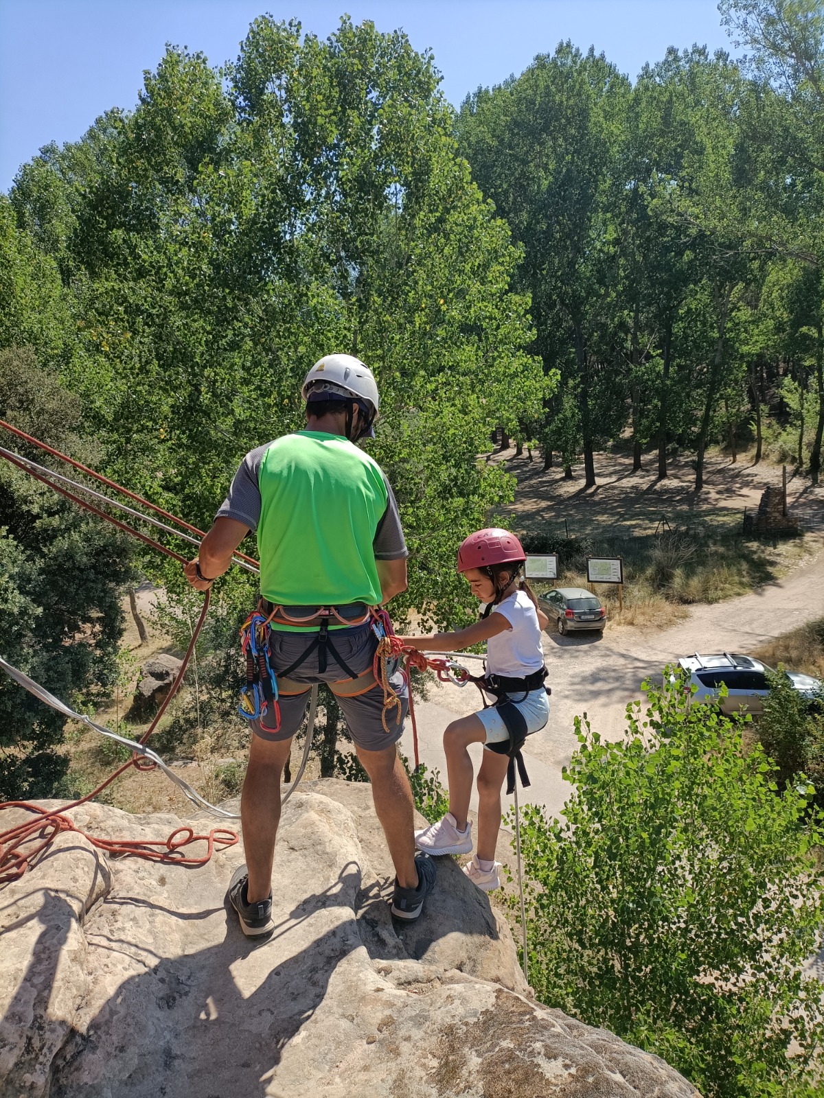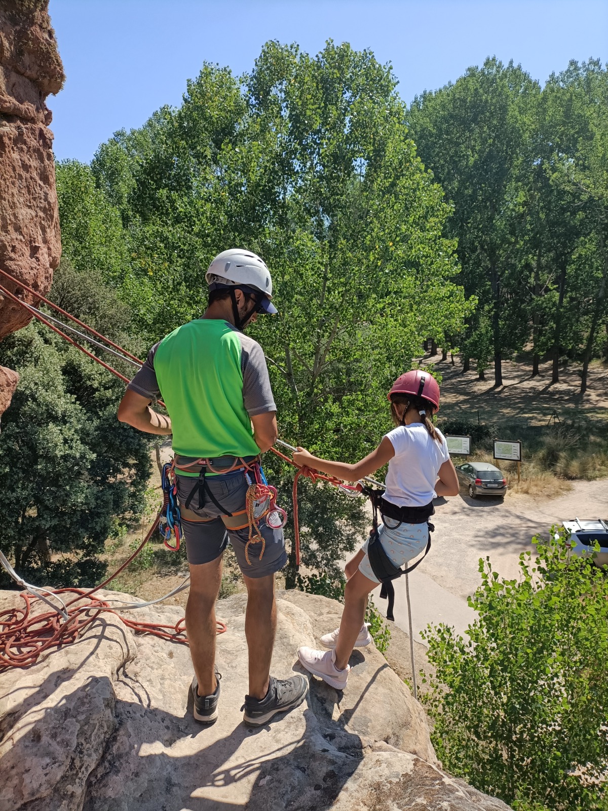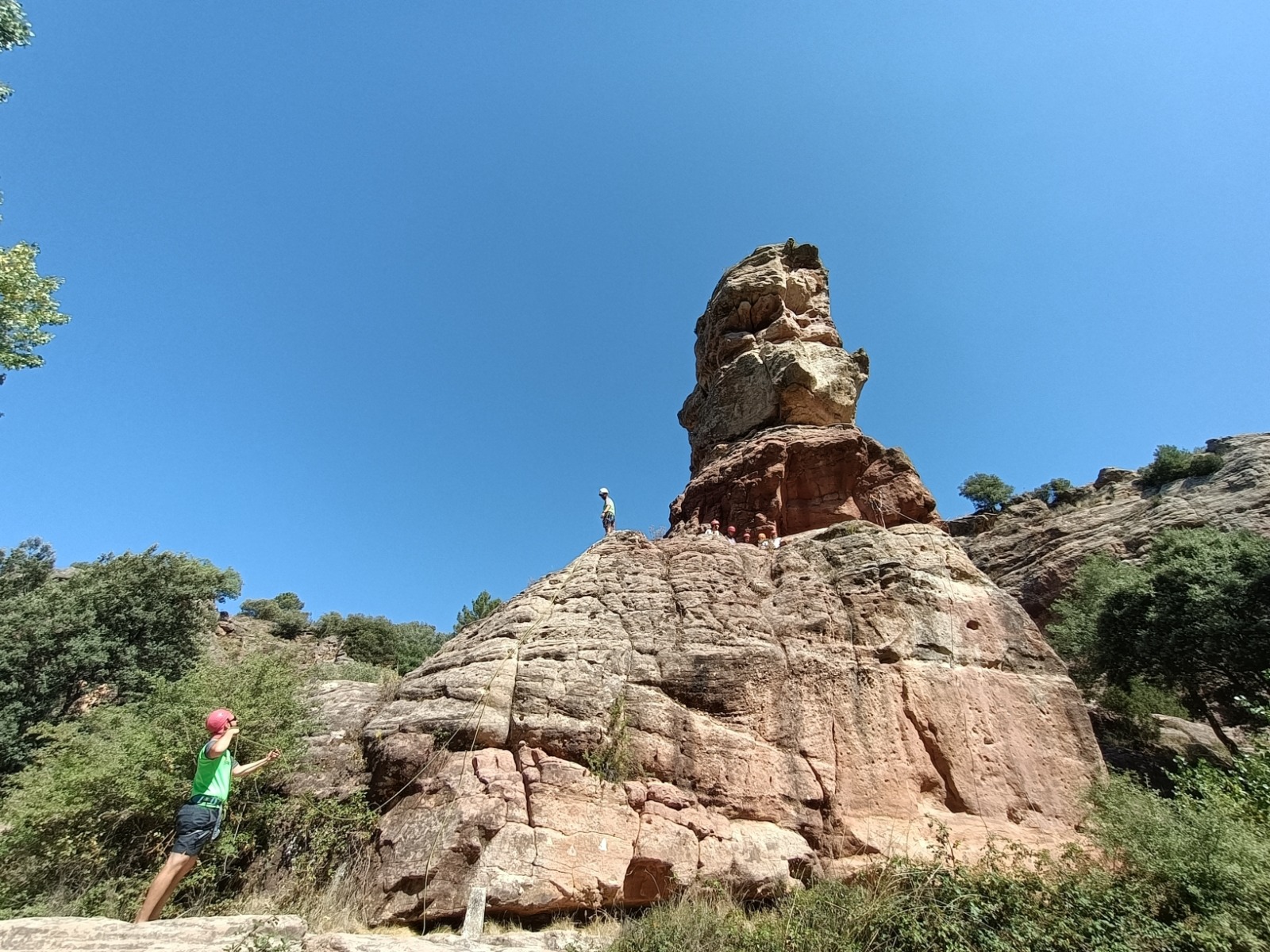 En concreto, hemos organizado la a actividad de escalada y rápel en la piedra del Huso en la que los participantes lo pasaron en grande y nosotros también un montón viendo como disfrutaban de la naturaleza, el compañerismo, la diversión y la aventura.