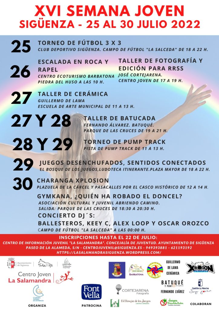 La XVI Semana Joven de Sigüenza se acaba de celebrar, es una actividad clásica del verano en la que hemos participado en colaboración con el Centro Joven La Salamandra y el Ayuntamiento de Sigüenza.